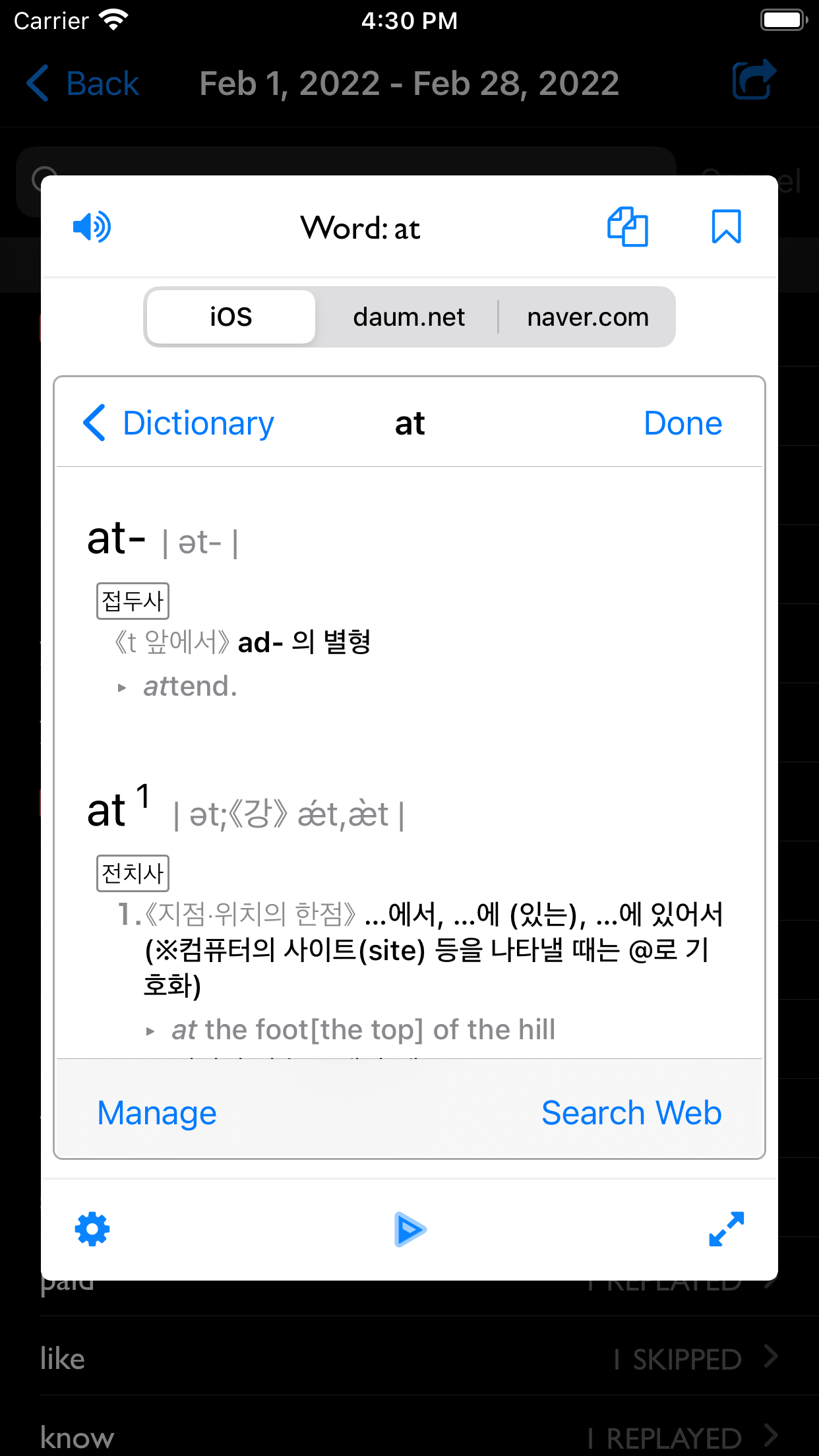 You can list all the words included in the content and easily access their meanings through more than 20 online dictionaries. The platform also provides a speech recognition feature for practicing pronunciation of individual words.