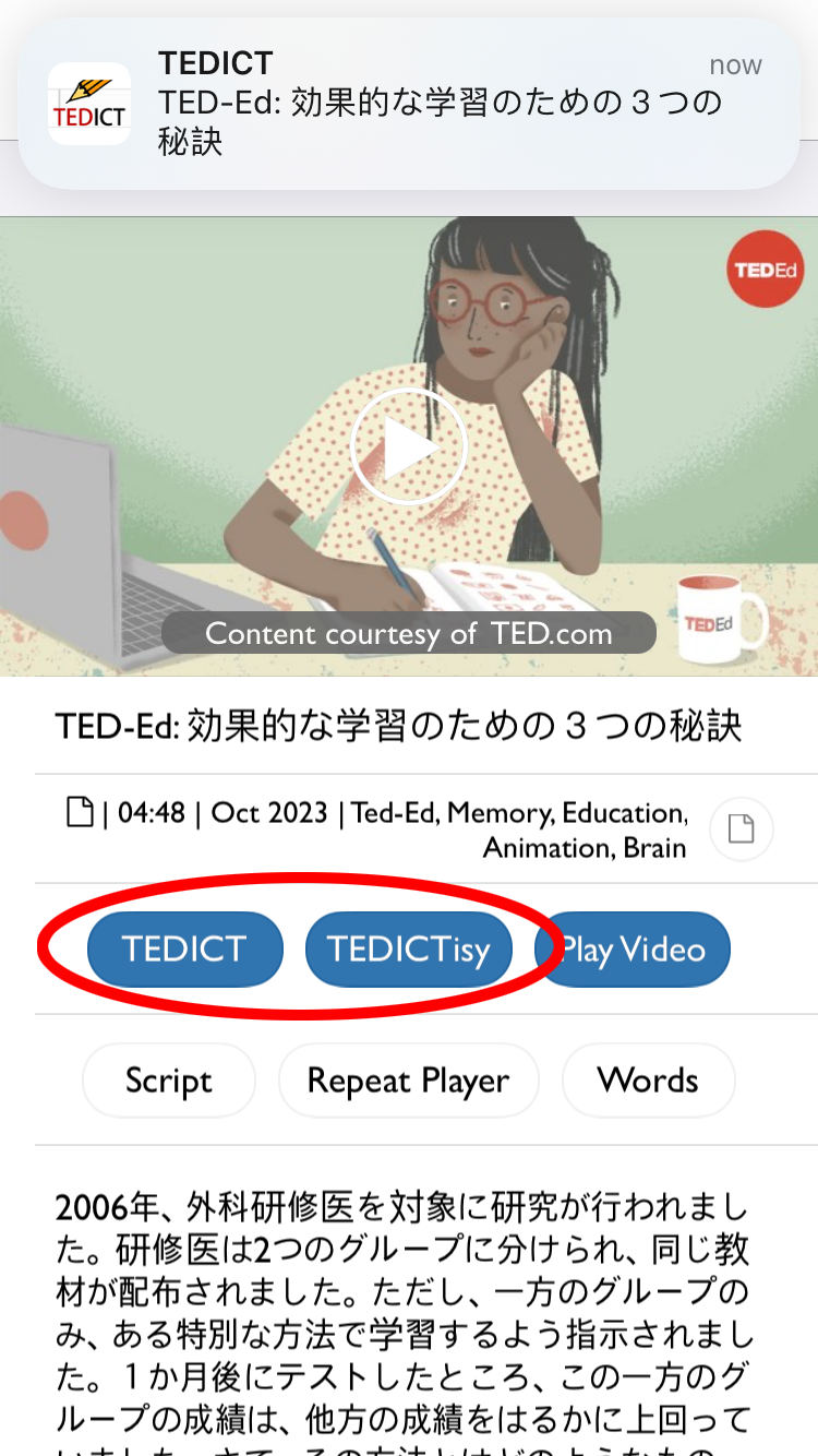 Because it only takes a short period of time, you can use it on the bus or subway. You can also use it as a TED viewer through the video function with the subtitles activated.