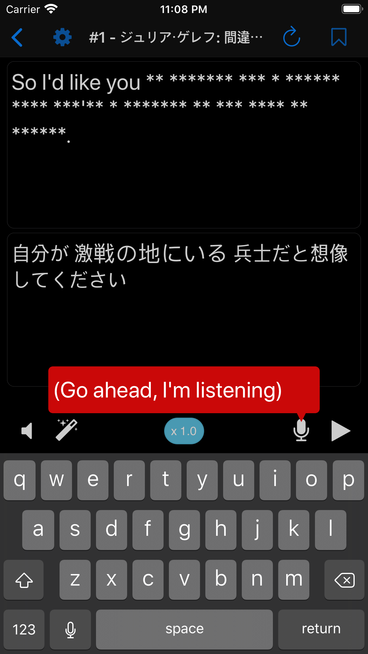 When you listen to the speaker and type in the words, the program will check them, letter by letter.